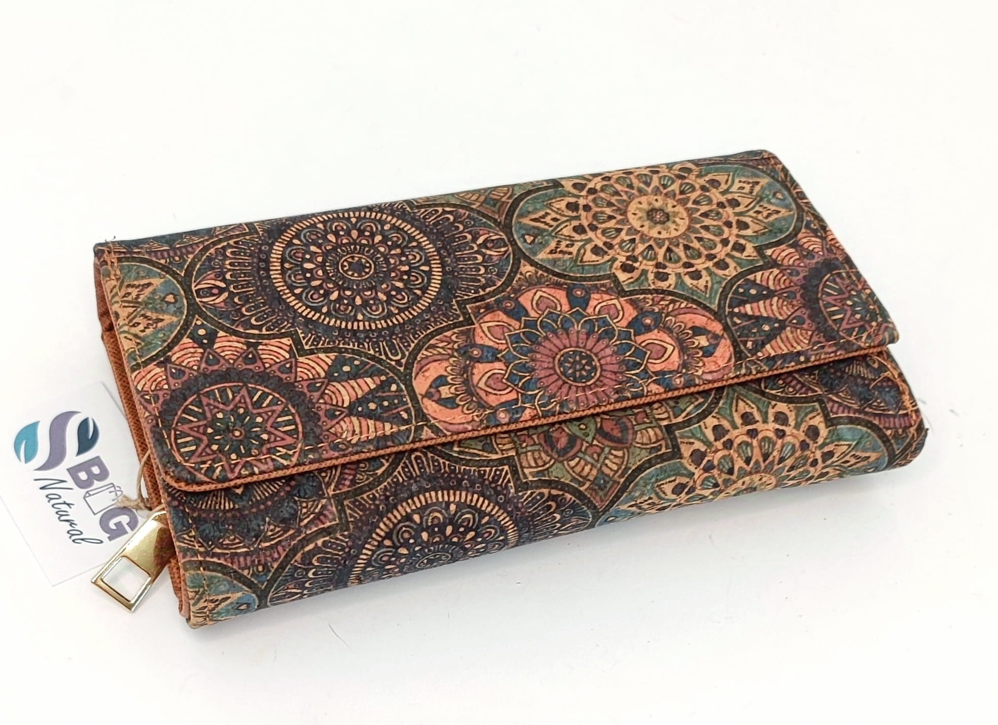 Ten wyjątkowy portfel został wykonany w całości z naturalnego korka – materiału pozyskiwanego z kory dębu korkowego w sposób zrównoważony i etyczny. Dzięki temu jest w pełni wegański oraz ekologiczny. Korek jest nie tylko lekki i przyjemny w dotyku, ale także wodoodporny i wyjątkowo trwały. Zdobiony unikalnym, mandalowym wzorem, portfel ten to kwintesencja elegancji, która podkreśli Twój indywidualny styl.
