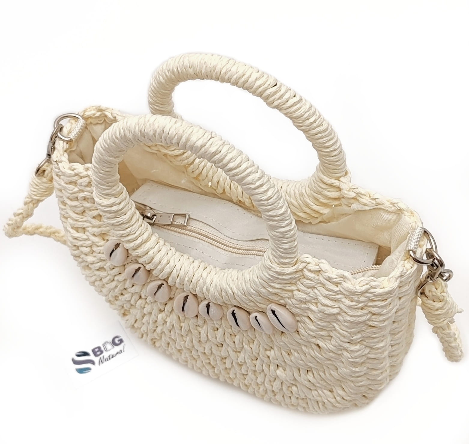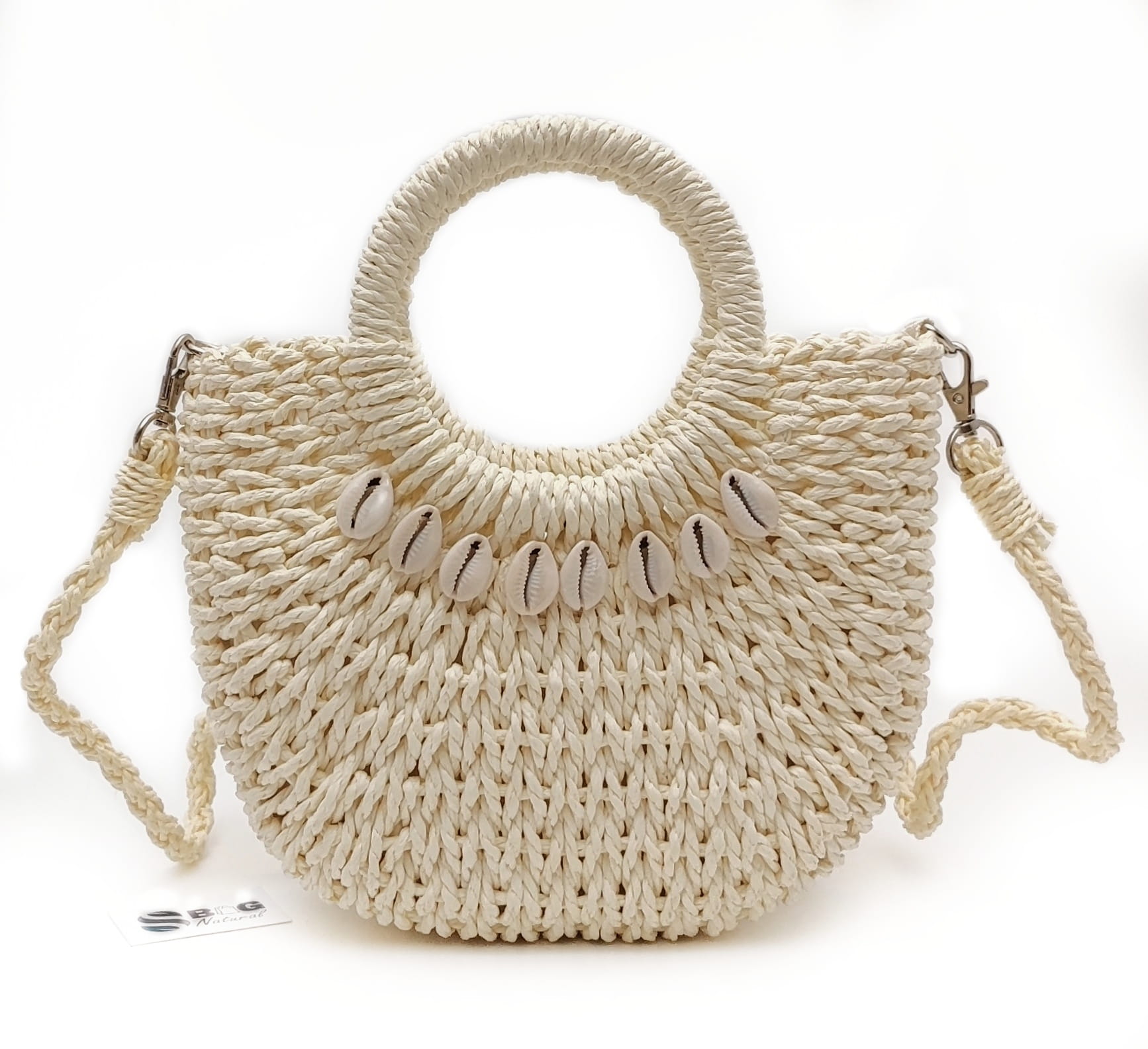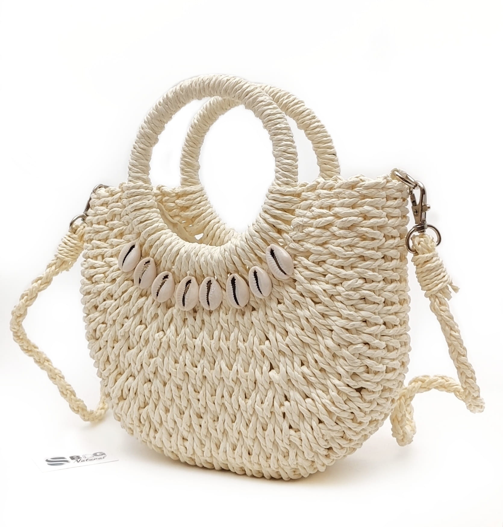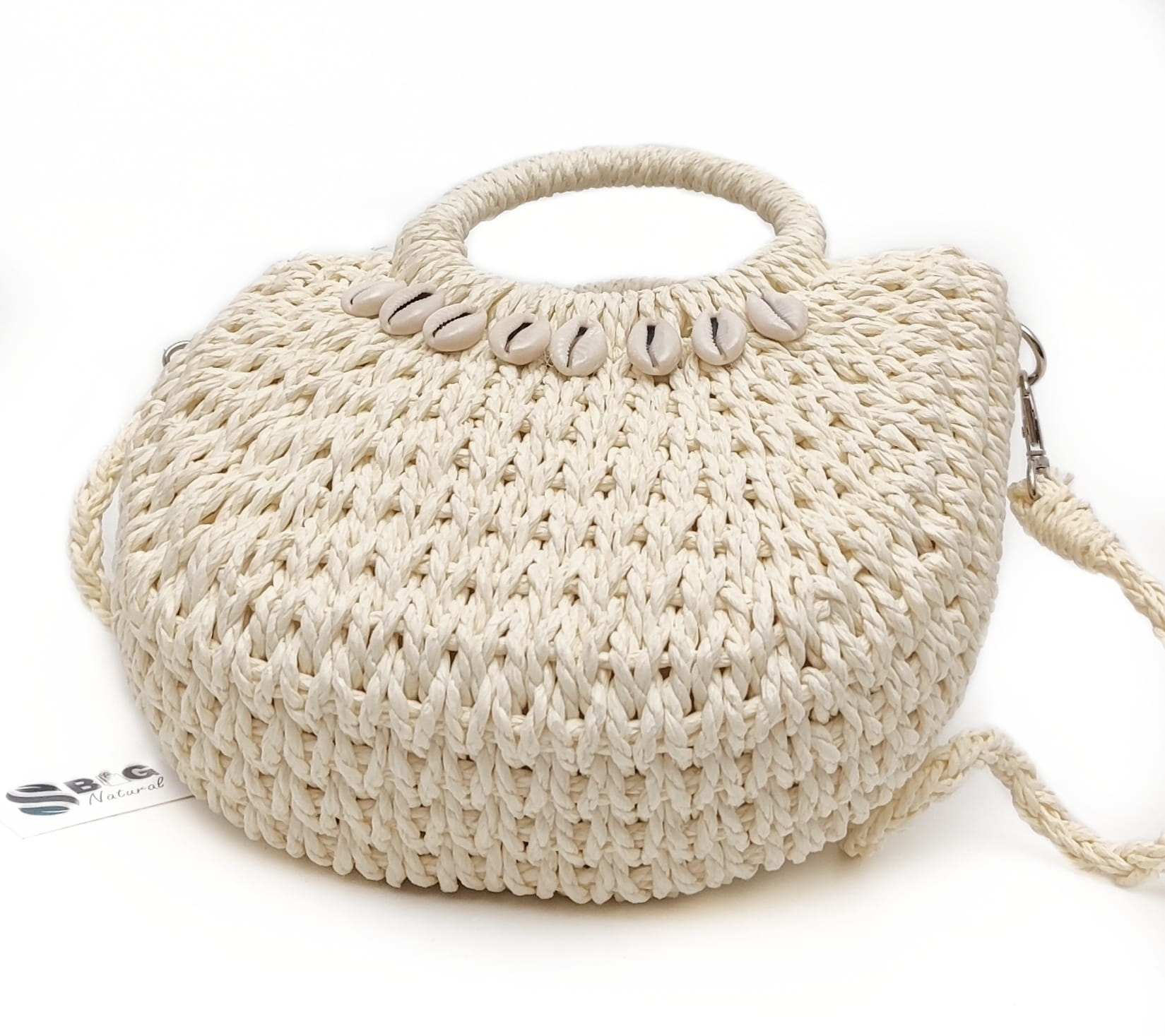 Torebka Koszyk Boho Listonoszka z Rafii Ecru – Letnia Klasyka z Muszelkami