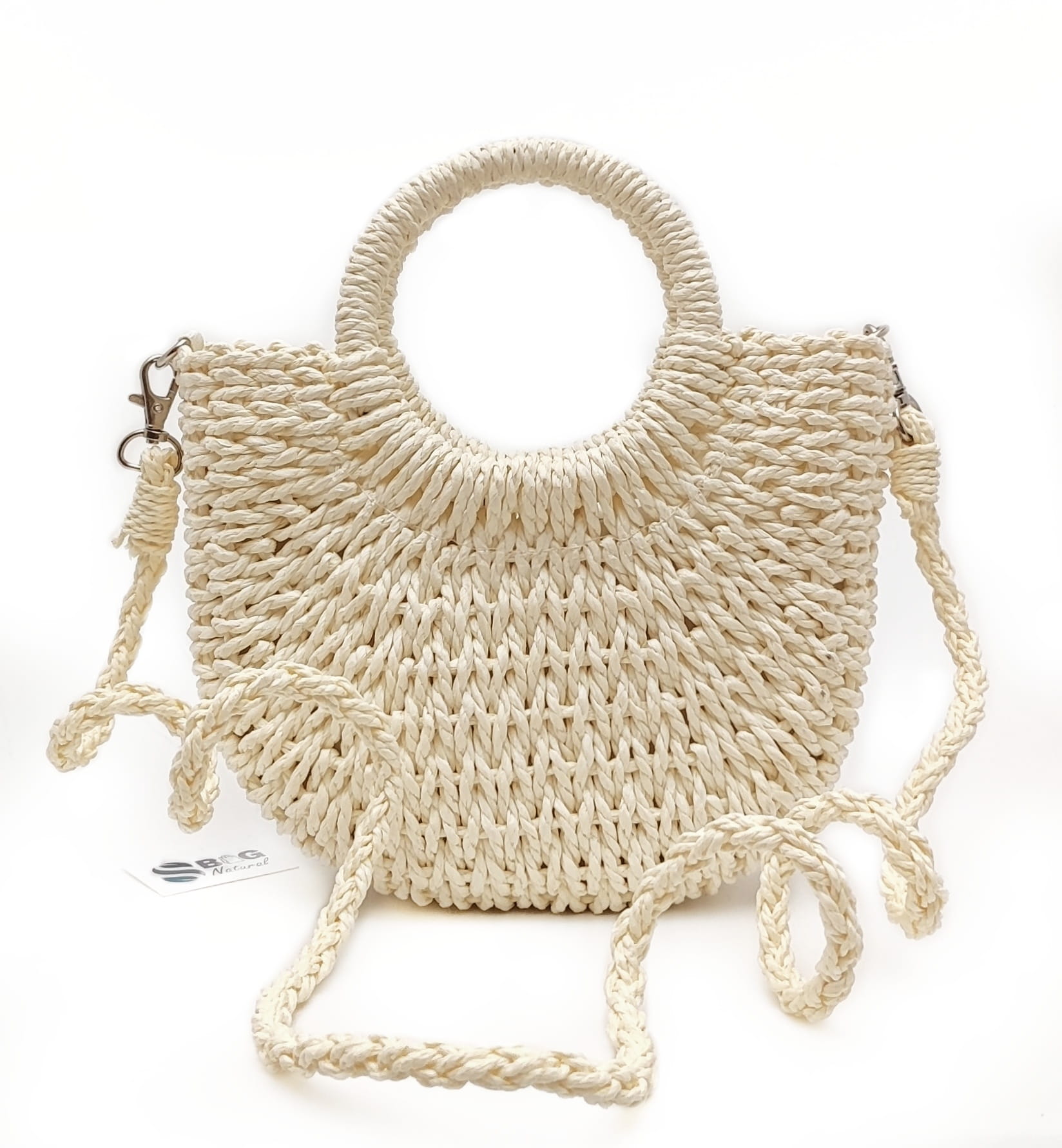 - Materiał: Pleciona rafia (wegańska)